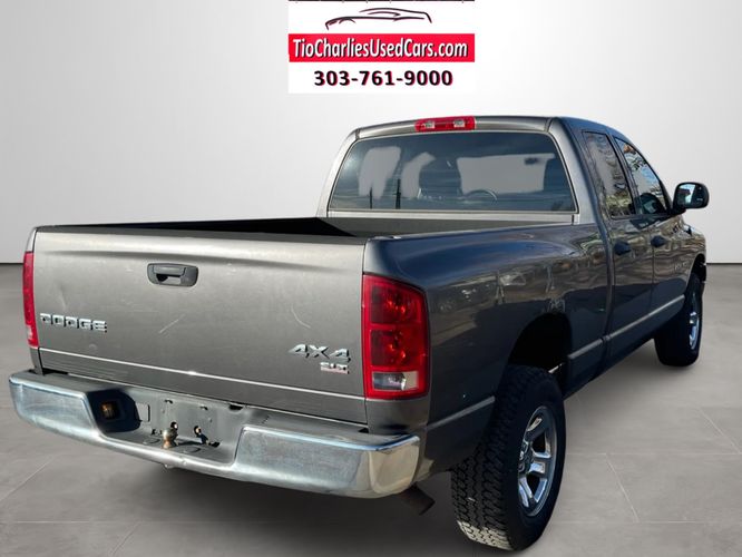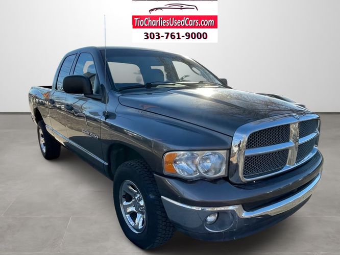 2003 Dodge Ram 1500 4WD (5-SPEED MANUAL TRANSMISSION) Only! $8,950 + 349 Dealer Handling + Tax + Smog Coupon. Clean Title Carfax History Report! Carfax Title Guarantee Buyback! Financing Available upon Request! We accept all Trade-ins. We also Buy Cars, Trucks, Vans, and SUVs. We will pay you on the spot if you have a Free and Clear Title or a Loan Payoff. We will pay off your Auto Loan to any Lien Holder. TIO Charlie's Inc, Dealer #4679, Stock #26-009 . Located at 2535 W Hampden Ave, Sheridan, CO 80110. Call Now! (303) 761-9000 * Hours of Operation are Monday-Friday Oct - Feb 9AM-5PM & Mar - Sept 9AM-6PM. Saturdays Appointments Only! We are Closed Sundays and Holidays. Shop our inventory at www.tiocharliesusedcars.com Thank you for your consideration.